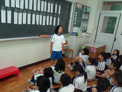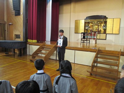 さて、本番。やはり緊張が伝わってきます。いつもは、スラスラ言えている部分、失敗したことがない部分で躓いてしまいました。子ども達の顔からも「どきり」としたのが伝わりましたが、しっかり立て直しました。