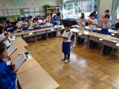 今日は、音読発表の日です。やる気いっぱいで臨みます。「覚えているか心配だったら、音読ファイルを持っていってもいいよ」と言いましたが、だれも持参しません。練習実績と裏打ちされたその自信をうれしく思いました。