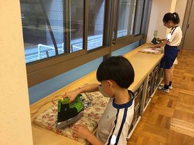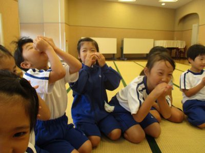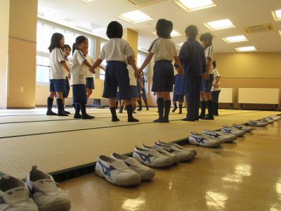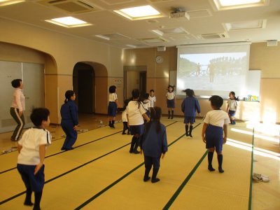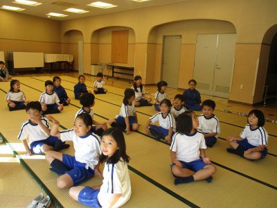 礼法に伴い、英語朝体操も今日からは、しばらく畳の上での活動です。