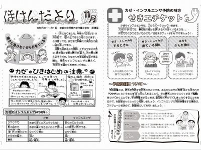 本日「ほけんだより11月号」を配布しましたので、お目通しください。