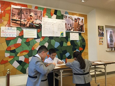 7月の初めに、ユニクロ・ジーユーの皆さんから「難民」について教わり、世界の動きに少しだけ目を向けてから、約4ヶ月。戦争や内紛で住むところや家族を奪われた子ども達に、自分達が着ていた古着を届けようと、2学期から回収活動を始めました。