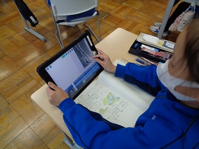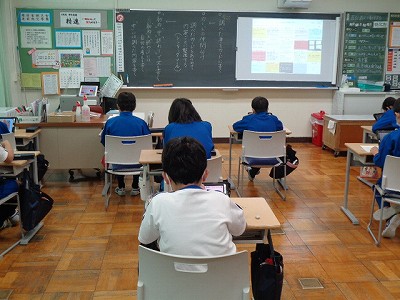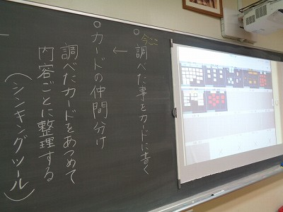4時間目は国語です。今日は本やインターネットに書かれた「もしもの時にそなえるべき事」について、たくさん調べたメモを、シンキングツールを使って分類し、整理していきました。