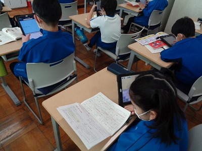 学習の後半には、漢字の音と訓を使って、リズム感ある歌作りに挑戦。