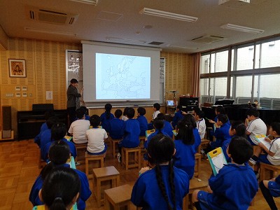 今日の4時間目は、ゲストティーチャーにフランス人の先生をお迎えし、フランスについて、いろいろ教わりました。