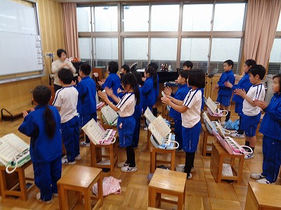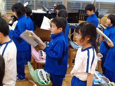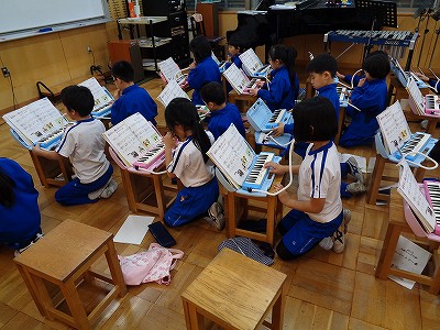 「♪チャチャマンボ」では、歌の練習が終わると、鍵盤ハーモニカでの演奏にチャレンジしています。
