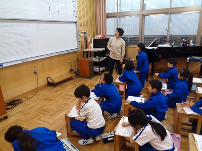 今日は、音階を教科書に書き、リズムや指番号、テンポについて学びました。