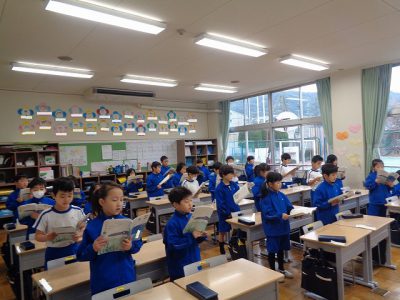 今朝は「百人一首」と「早口言葉」を音読しました。