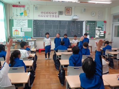 給食の時間の終わりに、クイズ係さんがなぞなぞを出してくれました。