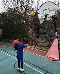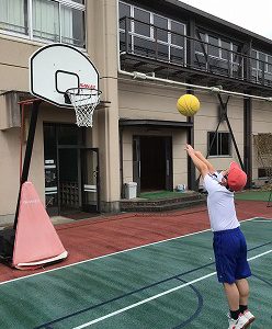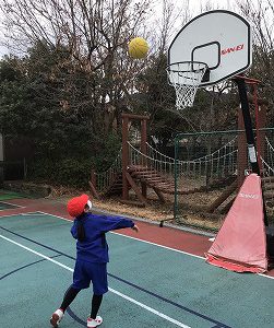 また、シュート練習にも挑戦し、少し離れたところからシュートをしたり、投げ方を変えたりして、ゴールを狙う姿が印象的でした。