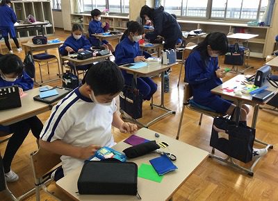 最終回となった「小物づくり」の時間です。使える物、見て楽しむ物を手縫いで進めることの仕上げの活動です。