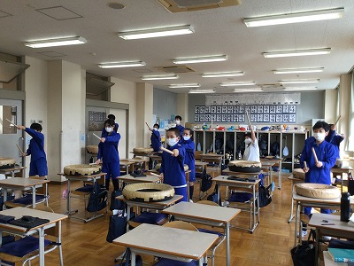 音楽室の「龍神太鼓」チームは、和太鼓を使って、みっちりと練習できたようです。