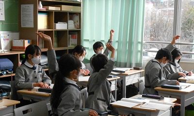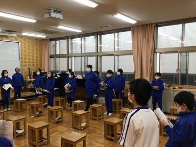 「ありがとうの会」に向けて、「♪グッデーグッバイ」の二部合唱を完成させようと取り組んでいます。