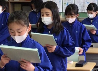 4年生は「6年生ありがとうの会」に向けて群読を行う予定です。まずは、詩の全文を頭に入れることを目標に、一日一回の練習をしています。