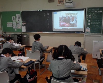 牛の放牧など、お家のお手伝いで大変な様子や、満足に環境が整っていない学校で一生懸命勉強する子供の様子、そんな子供達がランドセルを受け取っている様子を見て、子供達のうれしい気持ちが感じ取れたようです。ノートに感想をまとめました。