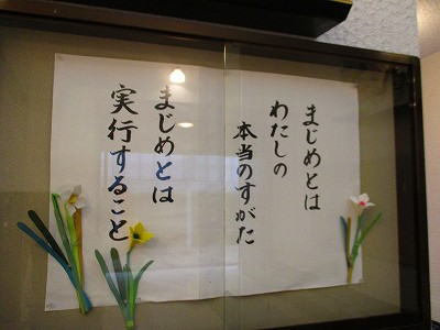 その下の掲示板に「まじめとは 私の本当の姿」「まじめとは 実行すること」とあります。