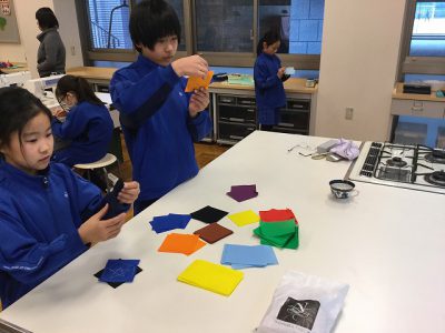 今日は、カラフルな不織布を使った“コースターづくり”に取り組みました。