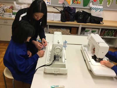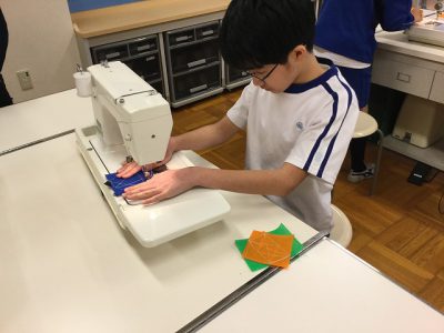 2学期に、テーブル布巾をミシン縫いで作っているので、今日のコースターは、お手のもの!