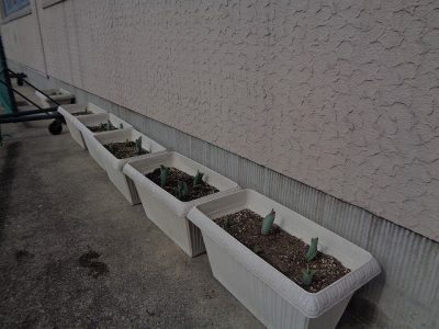 11月中旬、球根植えをした後、寒さを乗り越えて、大きく育ってきています。