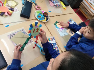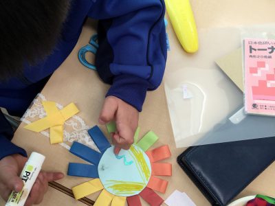 2年キッズは「バッジ」を作っています。