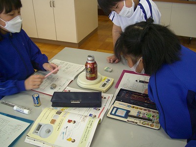 今日は、自分たちの筆箱や消しゴムなどの重さを量ってみました。