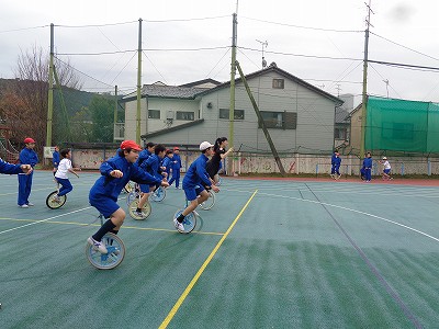 そして、5校時には、6年生の体育でも、「一輪車の特別授業」です!