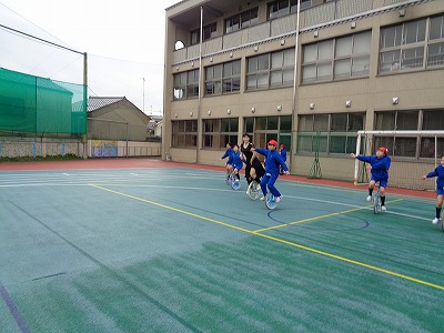 サッカー教室は近々他校との交流試合が予定されています。真剣に声を出し合ったり、笑い声が飛び交ったり。