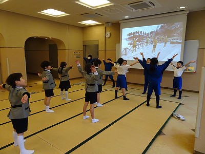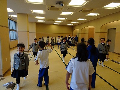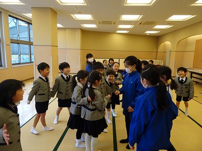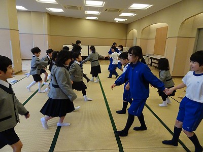 実は「はないちもんめ」は、英語や交流の他、「異学年メンバーの名前を覚える」ことも目的の一つです。「How about ~さん」「We want ~君」などと、声をかけ合う場面がありますが、そのようにして、みんなの名前を覚えていきます。
