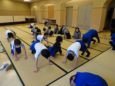 実演をしながら、つま先で押したり、手を伸ばして肩を後ろに引くといった具体的な動きを伝授頂きました。