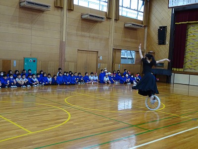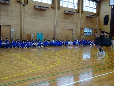 2/14金【一輪車パフォーマーのショー&特別授業・朝体操・給食・保健室】