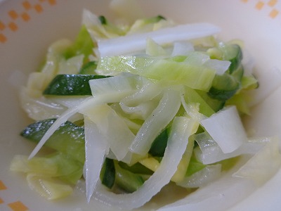 ☆ サラダに使われている野菜は、大根、きゅうり、キャベツです。