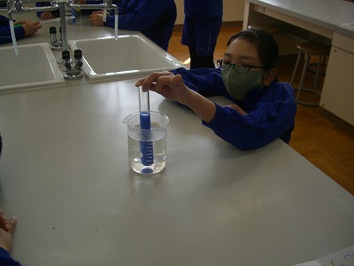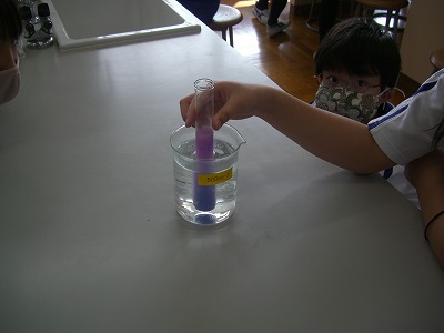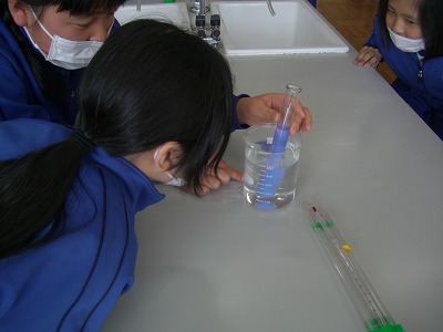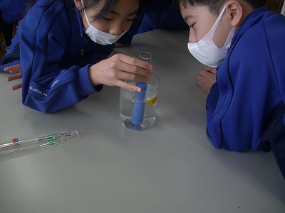 今日の理科は、教科書にのっていない「水のあたたまり方」の発展実験をしました。