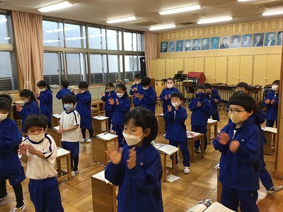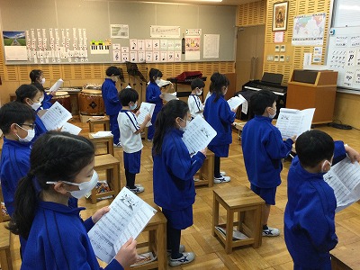 「♪夢の世界を」と「♪マイバラード」を歌っています。全校で歌ってきた歌達です。