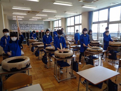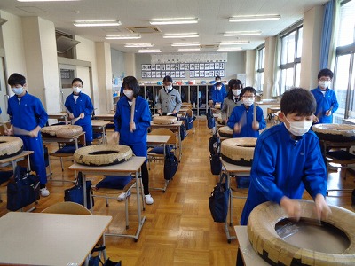 今日は教室でタイヤを使っての練習。