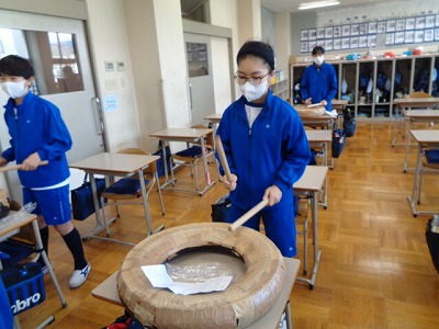 2つの教室に分かれて、6年生の和太鼓奏の練習が進んでいます。