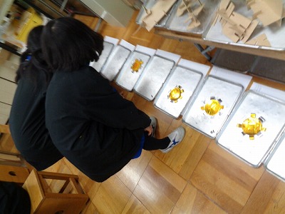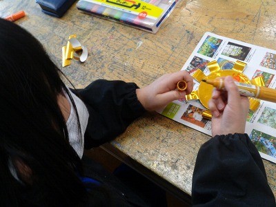 今日は、れんげ班での「ありがとうの会」で、6年生へプレゼントするバッジをつくりました。