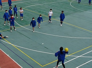 今日は運動場でボール遊びができる日です。15人・15分を守り、ドッジボールやバスケットボールをして仲良く遊んでいました。