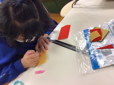前の時間に「アイロンの役目」を3つ、確かめていたので、いよいよ3つ目「ひっつける・くっつける」仕事を学習できたわけです。