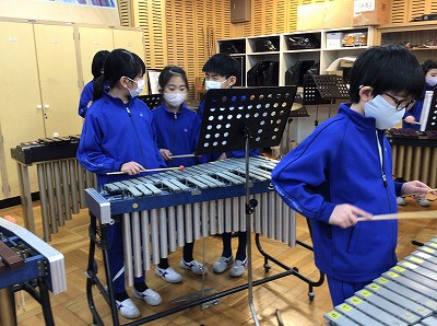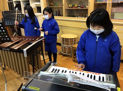 「歌とリズム」というパートも新しく設けています。楽器の担当を替わり合って、練習を進めています。