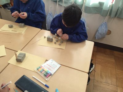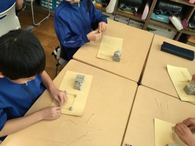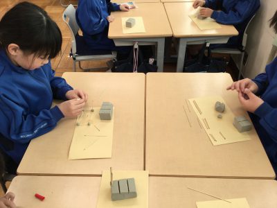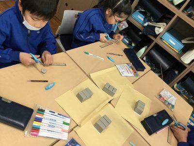 「えっと~この面に向かい合うのは…」と、学習のおさらいも合わせてできるところが、今日の活動の魅力です。