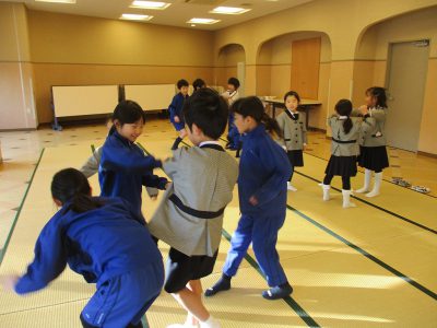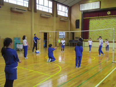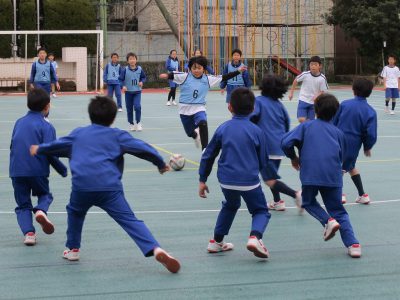[6年生] 対 [4・5年生]で、交流試合をしているスポーツ教室がありました。