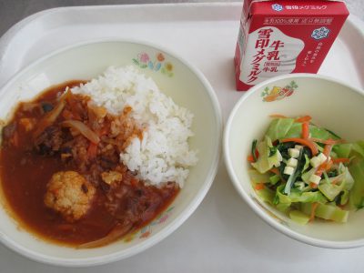 今日の献立は「ハヤシライス、水菜のサラダ」でした。