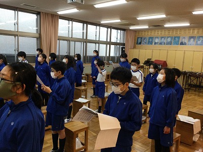 「ありがとうの会」で、全校が歌う曲として準備をするため、どの学年でも練習を再開しています。