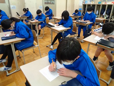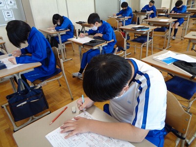 月曜日に続いて、2回目。漢字大会の文章を聞き取り、テスト用紙に漢字を書き込みます。