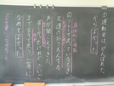 まずは二つの文を比較して、どちらの方が気持ちがよく分かるか、ノートに理由もつけて書きました。