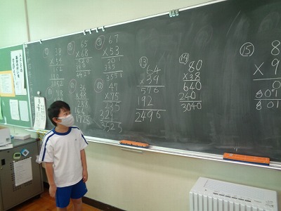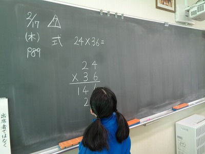 かけ算の筆算の学習です。