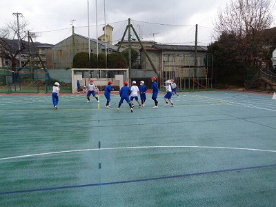 まずは、ボールタッチやドリブル、シュートの練習でウォーミングアップ。
