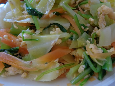 ☆ 壬生菜、キャベツ、人参、炒り卵の胡麻あえです。