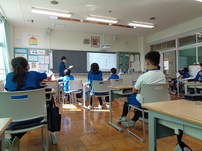 今日の題材は「みかん出し」というお話です。このお話は、毎年みかんを出荷する準備をお手伝いする少女のお話でした。少女は、初めあまり乗り気ではありませんでしたが、お手伝いを続けているうちにだんだん楽しくなり、時間があっという間に経ってしまうというお話です。4年生は、委員会活動や黙掃除などの活動を通して、同じように「進んで働く」少女に共感する部分も多いようでした。