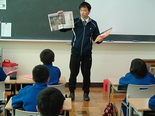 ミスターヨコヤマから「スーホの白い馬」英語絵本と、モンゴルの暮らしぶりが書かれた小学生新聞の紹介がありました。