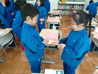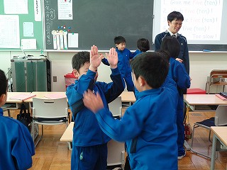 その後、子ども達は教室をぐるぐる巡りながらパートナーを見つけ、英語手遊びをしていました。